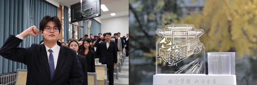 领导老师们为2025届学院学生会代表暨2024-2025学年“青马工程”培训班优秀学员代表发放了校园文创纪念品,并向学院第一批基层团支部“团建指导员”颁发了聘书。随后,“青马工程”培训班全体成员进行庄严宣誓,铿锵誓言回荡现场,展现了青年骨干对马克思主义的坚定信仰。