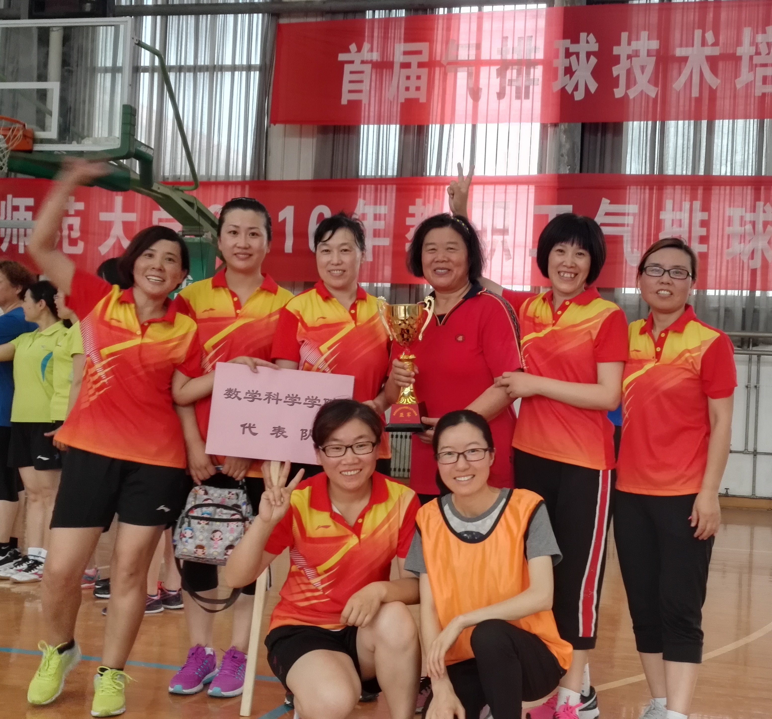 在为期五天(2016年6月15日-19日)的全校首届女子气排球比赛中,国产自拍 组成了以孟凡伟院长为领队、王方立书记为教练,由杨凤华、张克梅、徐润、苗翠霞、朱伟卫、张艳华、李修美、吴慧八位女老师为队员的数学院女子气排球队。在比赛中,国产自拍 女子气排球队团结合作,众志成城,充分发挥了国产自拍 教职工“敢打敢拼、永争第一”的拼搏精神,连续战胜强队,最终勇夺全校首届女子气排球比赛亚军。这也是国产自拍 女子排球队取得的历史最佳战绩。